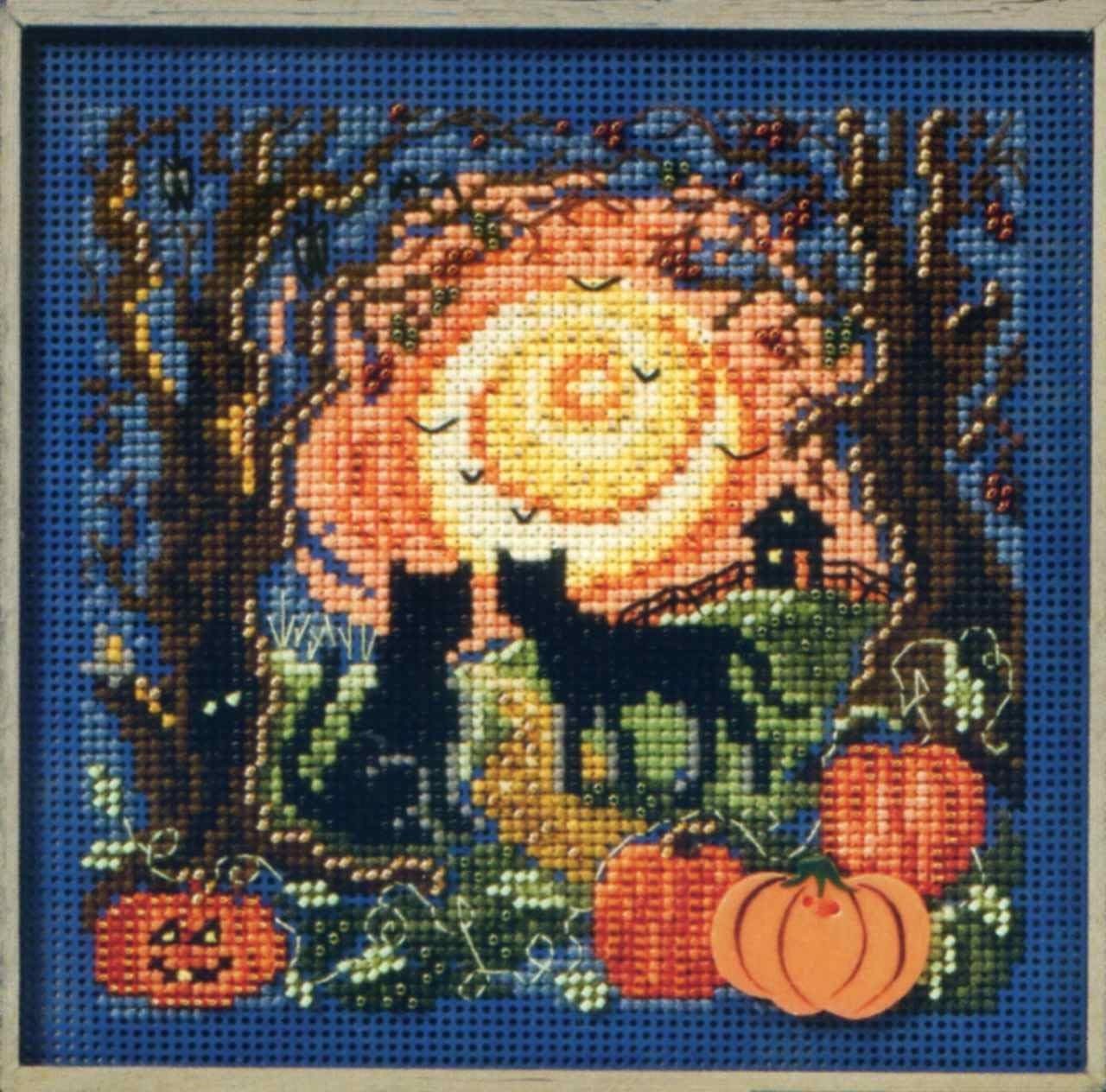 Kit includes Mill Hill Glass Beads, JABC Pumpkin Ceramic Button, Mill Hill Perforated Paper, and floss