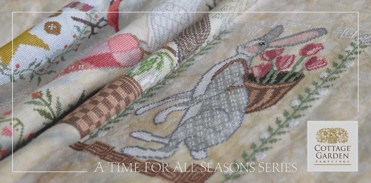Cottage Garden Samplings counted cross stitch pattern ~ Gathering Acorns ~ A Time For All Seasons Series #9