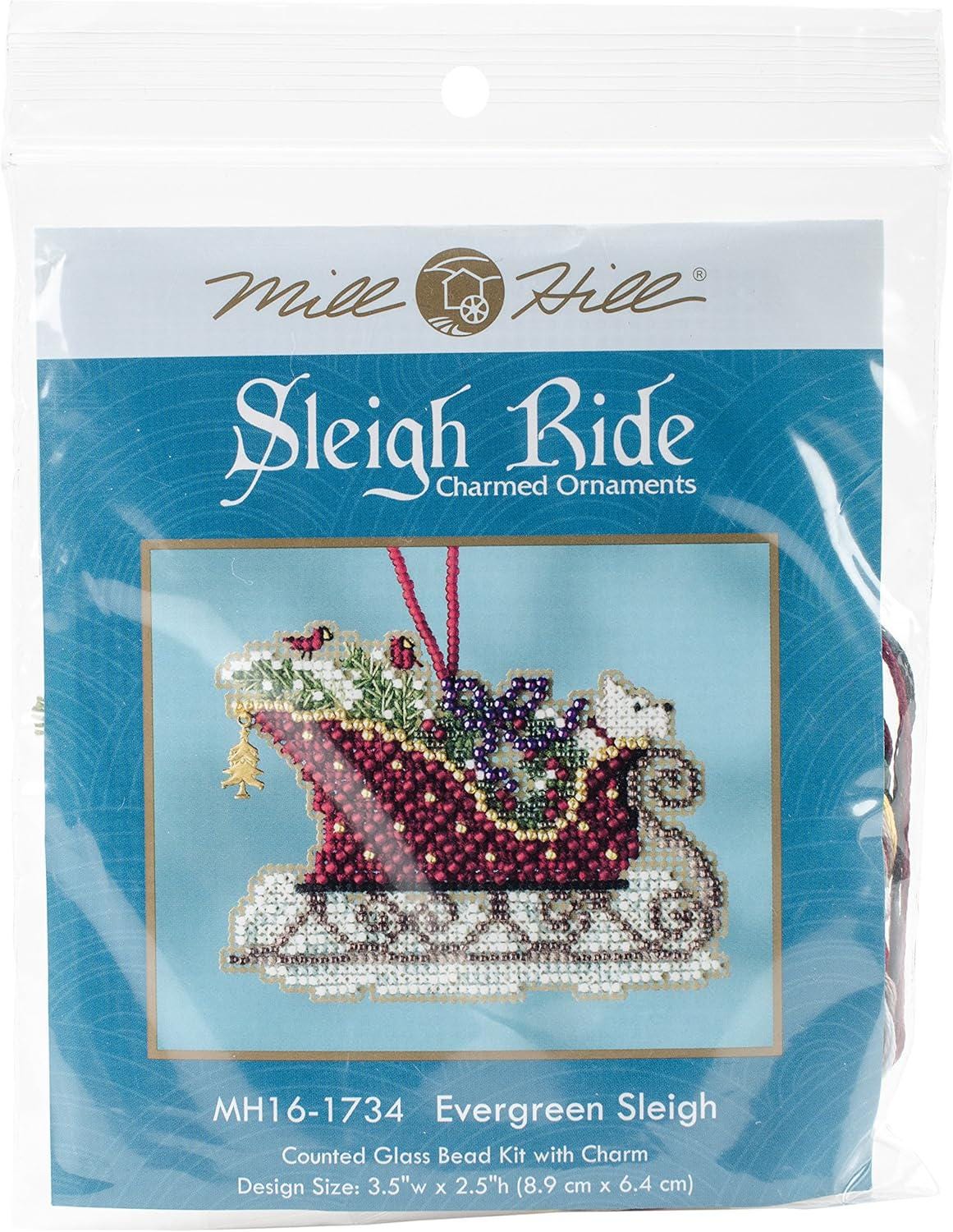 Evergreen Sleigh Beaded Cross Stitch Kit Mill Hill Charmed Ornaments 2017 Sleigh Ride MH161734