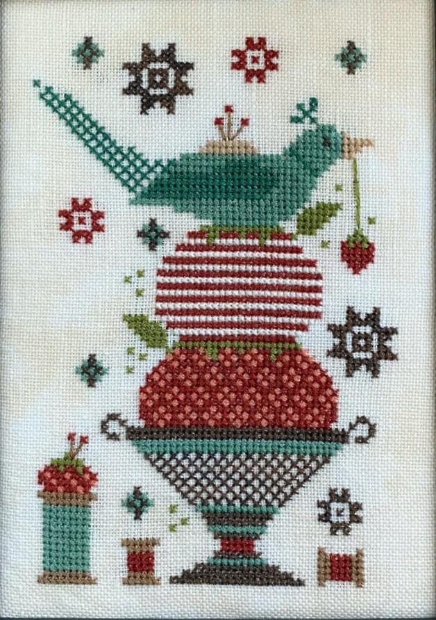 Threads of Time Sewing Bird counted cross stitch pattern from Stitches by Ethel.