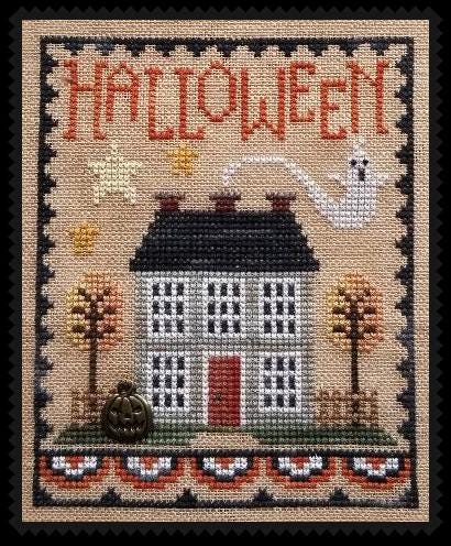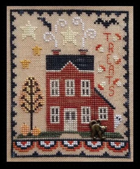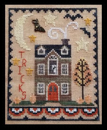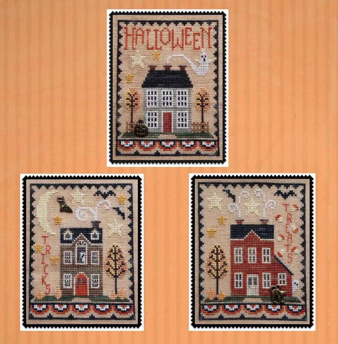 New Waxing Moon Designs printed counted cross stitch pattern ~ Halloween House Trio #175.