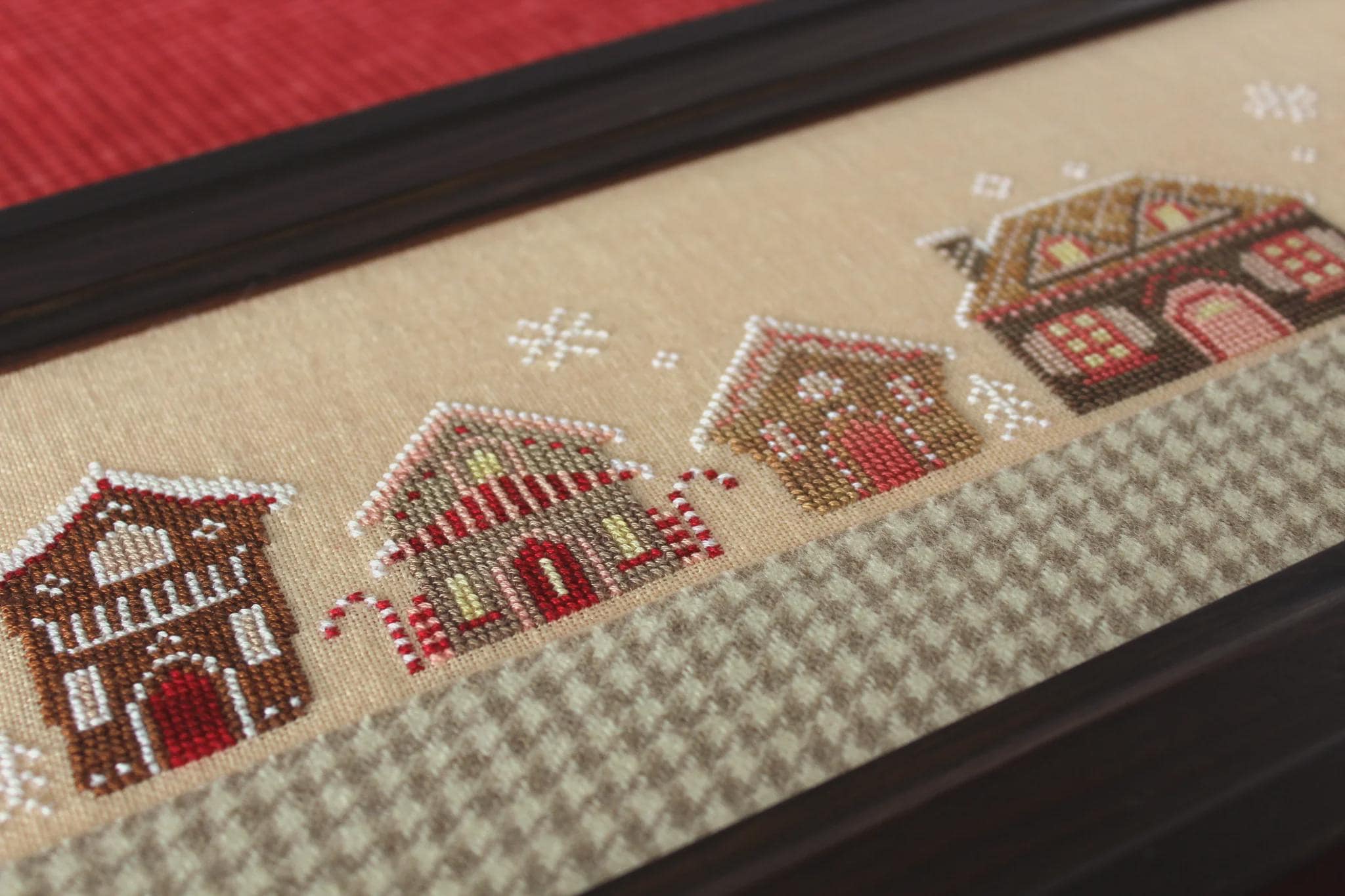 Gingerbread Row counted cross stitch pattern from October House Fiber Arts, designed by Robin Sample