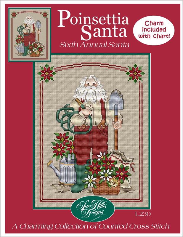 This sixth pattern in the Annual Santa series shows Santa working hard to grow the lovely poinsettias that we enjoy at Christmas. Rich color and attention to detail make this handsome Santa a treasured part of your holiday decorations. Chart includes a poinsettia charm! Poinsettia Santa counted cross stitch pattern from Sue Hillis Designs