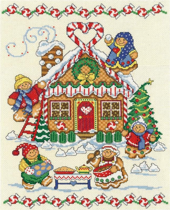 This Gingerbread family is getting ready for the holiday season! Decorating their own house with candies and love all while baking some yummy holiday treats, this piece makes the perfect decoration for the Christmas season! Gingerbread Family is designed to be stitched on 14ct Natural Aida fabric and uses 15 different colors of DMC floss.