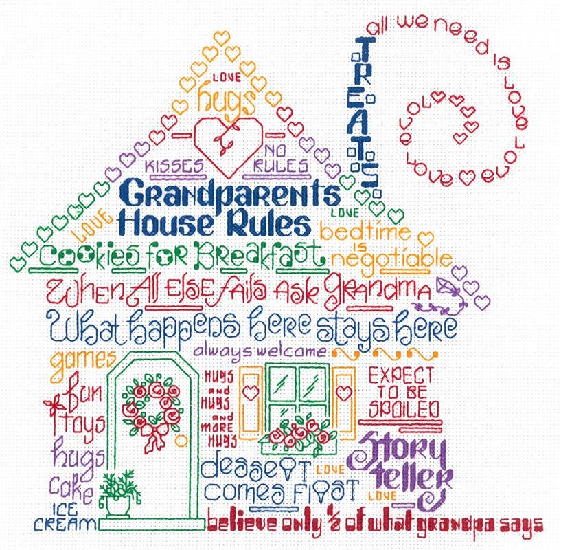 Step into the warmth of Grandma’s house with this charming cross stitch design! It features a cozy home built from heartfelt words that capture the joy of visiting Grandma—cookies, hugs, bedtime stories, and laughter fill the walls of this colorful creation. Stitch up a little nostalgia and celebrate the love, comfort, and fun that make Grandma’s house the best place to be! Project includes full stitches, quarter stitches and backstitching. Chart will be in black and white symbols with colored backstitch lines. Let's Have Fun at Grandma's is designed to be stitched on 14ct White Aida fabric and uses 5 different colors of floss.
