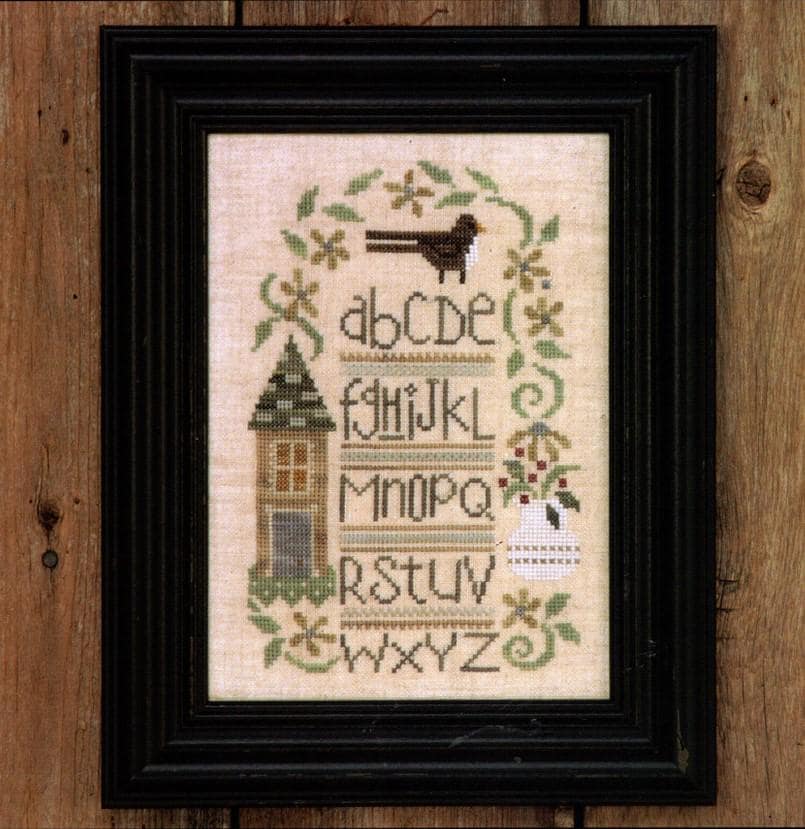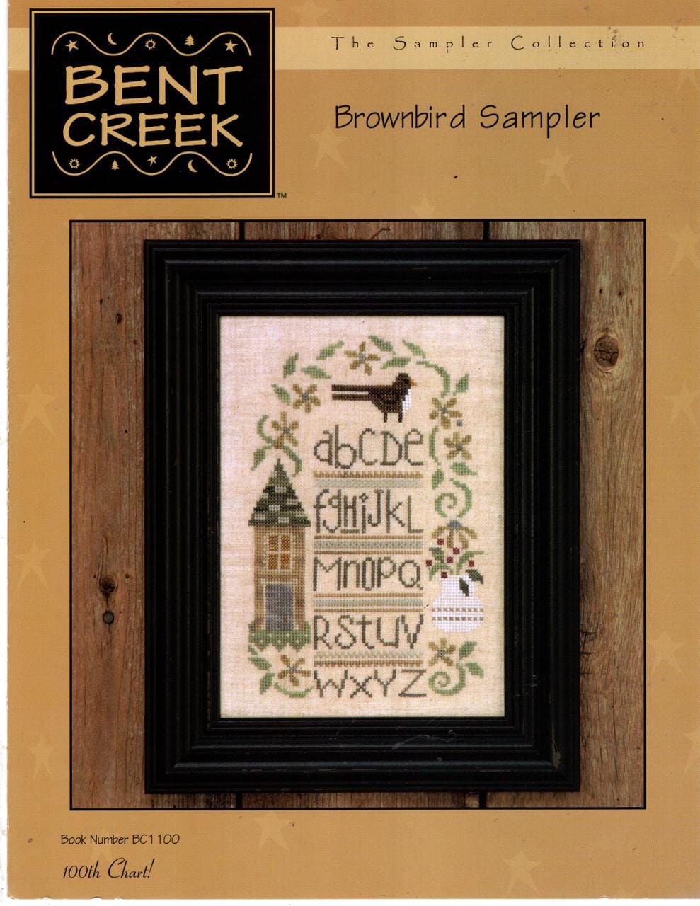 Brown Bird Sampler by Bent Creek counted cross stitch pattern. Model stitch on 28ct Lambswool linen using Weeks Dye Works and The Gentle Art threads ( DMC alternates listed ) . Stitch count: 76 x 120