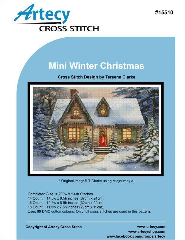 This counted cross stitch pattern of a Cabin at Christmas was created with Artwork by T Clarke using Midjourney AI. (THIS IS THE MINI VERSION) Only full cross stitches are used in this pattern. It is a black and white symbol pattern.